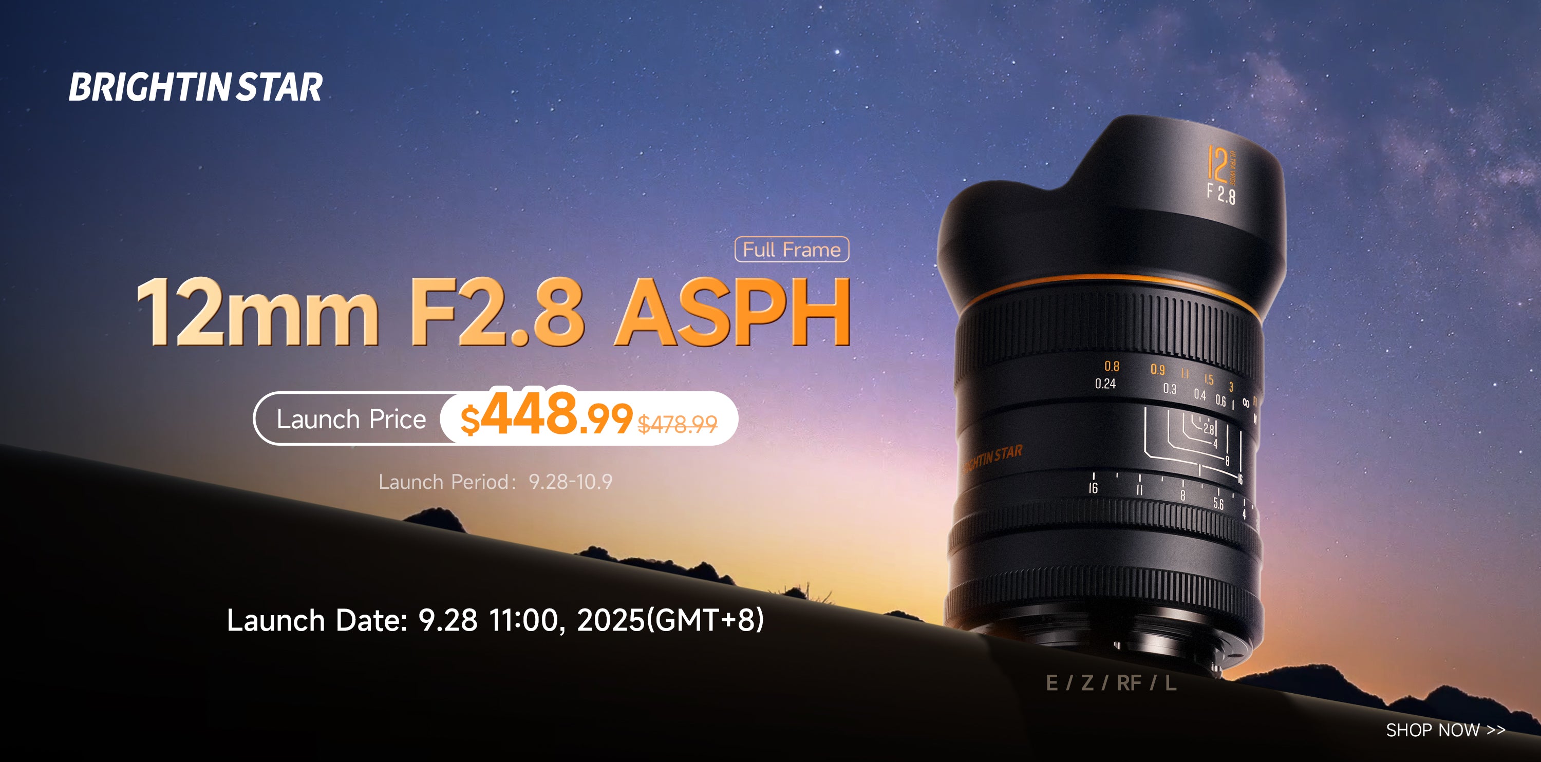 Brightin Star | Full Frame LensSize, weight: 70*96.6mm, 550gMount: Canon RF, Nikon Z, Sony mount, L mountScene: Starry Sky, Landscape, ArchitectureCapture stunning 122.5¡ã ultra-wide views with F2.8 low-light clarity, minimal distortion, and a lightweight, portable design