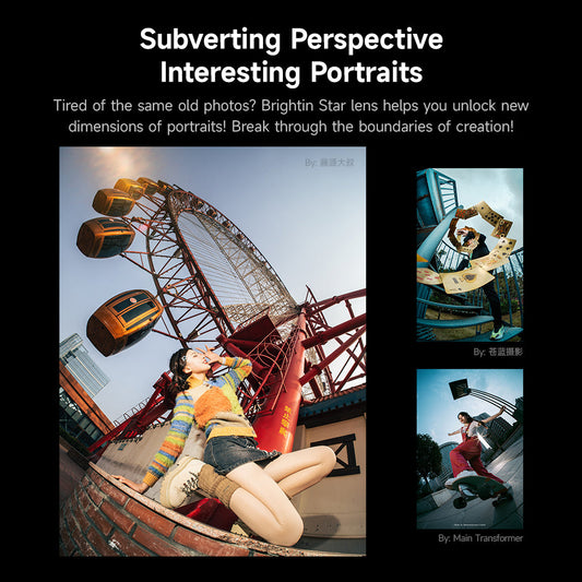 Brightin Star | APS-C LensSize, weight: 54*31cm,120gMount: M4/3, Canon EF-M, Sony E, Nikon Z, Fuji XScene: landscape, architecture, tourism, people, humanitiesUltra wide angle fisheye lens, extraordinary 173?? viewing angleBrightin-Star 10mm F5.6 APS-C Lens Wide-Angle Lens Fisheye Lens Pancake Lens Street Photography Manual Focus Mirrorless Camera Lens