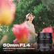 [Upgraded UMC Coated Lens] This 50MM f1.4 mirrorless camera lens uses multi-layer nano-coating, which greatly reduces ultraviolet rays and stray light entering the lens, effectively eliminating ghosting and flare, while improving light transmission and providing better picture quality.